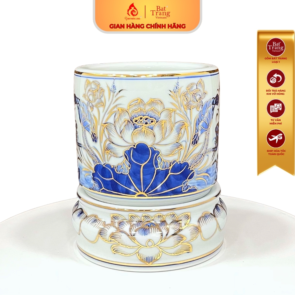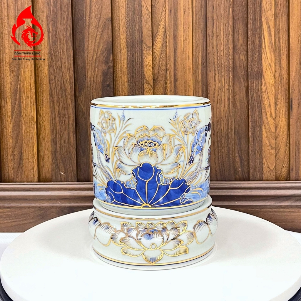 Gốm Thiên Long là cơ sở chuyên sản xuất và phân phối gốm sứ Bát Tràng trên thị trường. Mẫu bát hương vẽ vàng hoa sen là thiết kế tiêu biểu mà chúng tôi muốn giới thiệu đến với bạn. Với nhiều năm kinh nghiệm trong làm gốm, đơn vị đảm bảo chất lượng sản phẩm cũng như đưa ra mức giá thành hợp lý, phải chăng cho khách hàng.