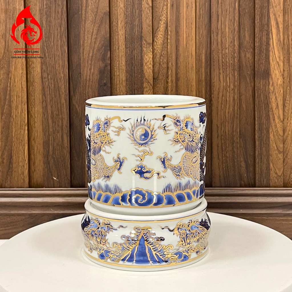 Địa chỉ cung cấp bát hương vẽ vàng lưỡng long chầu nguyệt R230723 chính hãng