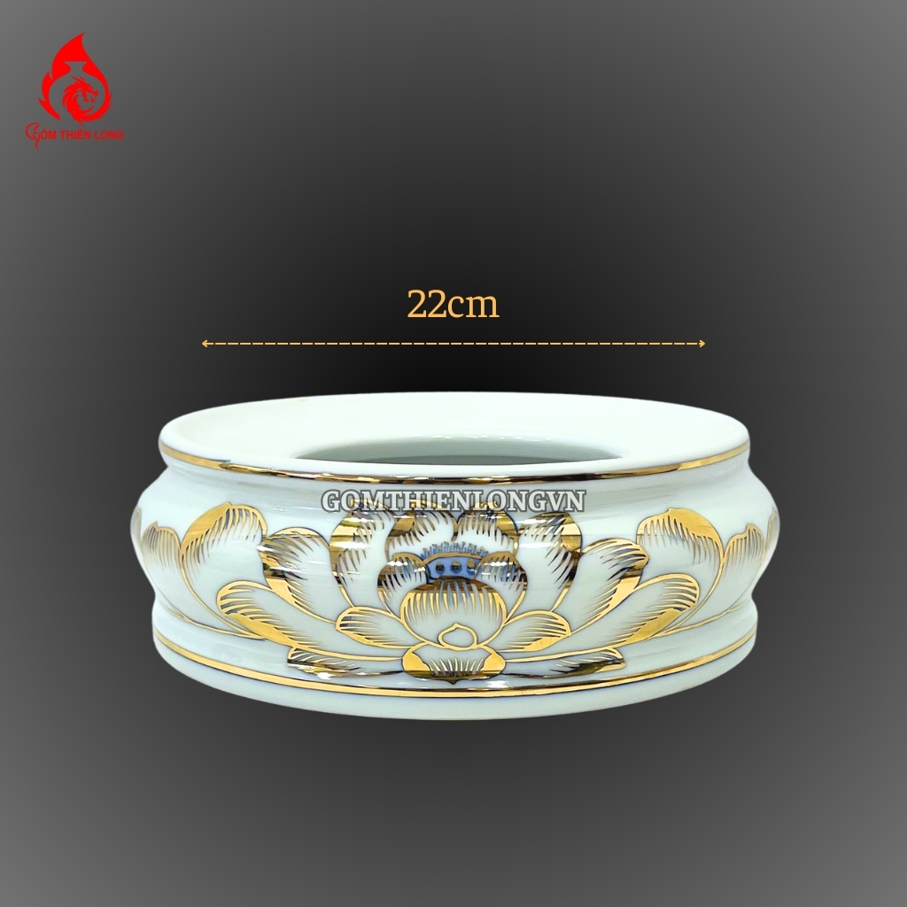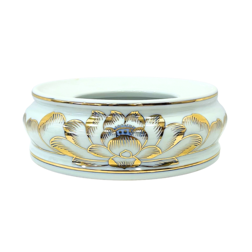 Bên cạnh đó, hoạ tiết hoa sen trên đế bát hương bát tràng vẽ vàng 24ktrong phong thuỷ có tác dụng mang lại nguồn khí vượng cho gia chủ, xóa tan mọi muộn phiền, tăng sức khỏe cho các thành viên gia đình.