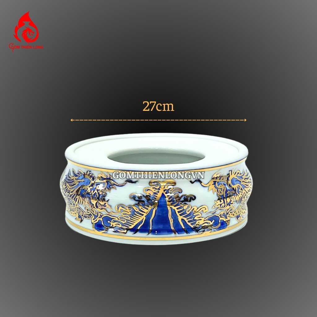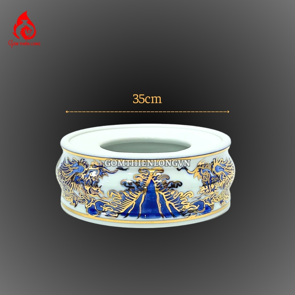Đế bát hương men lam vẽ vàng là vật phẩm thờ cúng rất được nhiều gia đình yêu thích. Sản phẩm được làm từ dòng men lam kết hợp với đường nét vẽ vàng độc đáo làm tăng tính sang trọng, uy nghiêm của đế bát hương. Ở bài viết dưới đây, hãy cùng gốm Thiên Long khám phá kỹ hơn về thiết kế, tác dụng, ý nghĩa cũng như ai hợp sử dụng đế bát hương men lam vẽ vàng này hơn nhé.